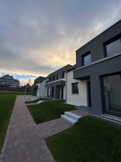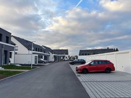 Die modernen 4,5 Raum-Wohnungen der Reihenmittelhäuser bieten eine Wohnfläche von ca. 112 m² und sind mit einem Kaminofen und einer Fußbodenheizung ausgestattet. Im Erdgeschoss befindet sich ein großes Wohnzimmer mit angrenzender offener Küche. Ein Gäste-WC sowie der Abstellraum sind ebenfalls im Erdgeschoss vorzufinden. Durch eine offene Treppe erreicht man das Dachgeschoss welches in zwei Kinderzimmer, ein Schlafzimmer und ein Bad aufgeteilt ist. Durch den Dachspitz in Form eines Kaltdachs stehen weitere ca. 14 m² Nutzfläche zu Verfügung. Der Außenbereich besteht aus einer Gartenfläche mit einer Terrasse.